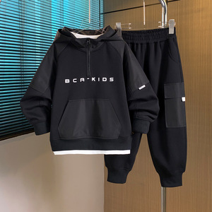 男童新款连帽卫衣套装2025春秋季中大童儿童洋气宽松运动衣两件套