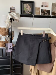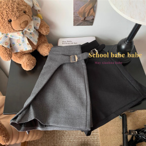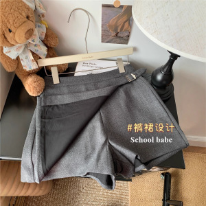 韩系小众不规则毛呢包臀裤裙女秋冬侧扣高腰显瘦气质A字西装短裙