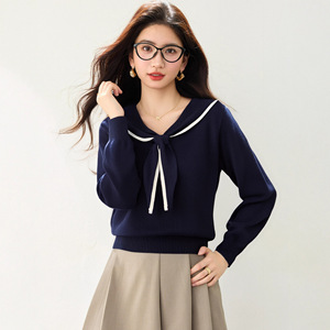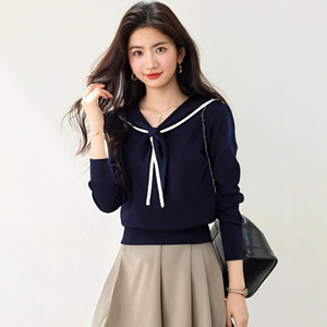 藏蓝色海军领针织衫女秋冬季2025新款学院风宽松休闲气质长袖上衣