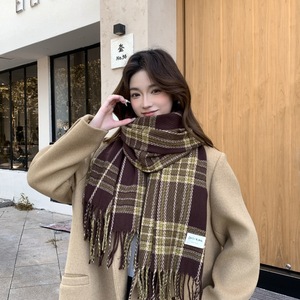 复古高级氛围感格子围巾女秋冬季韩系百搭羊绒手感围脖披肩2025