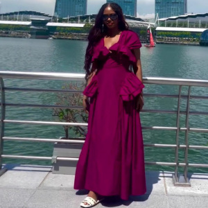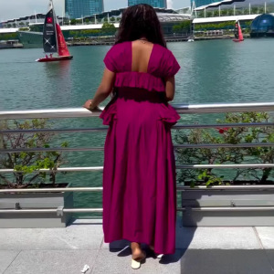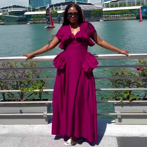 欧美气质优雅长款连衣裙女非洲高腰显瘦纯色大码长款露背女装长裙