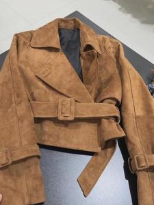 韩版复古感纯色翻领夹克上衣秋季新款百搭系带设计感外套