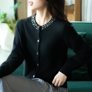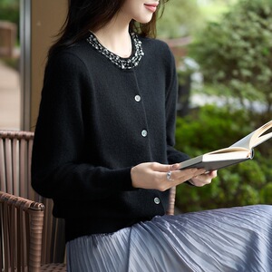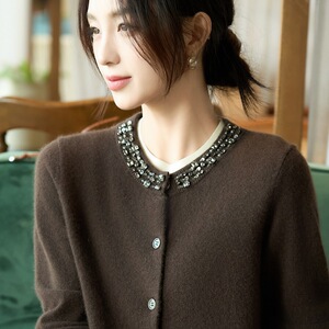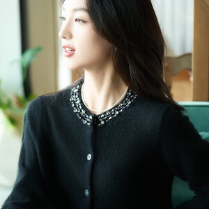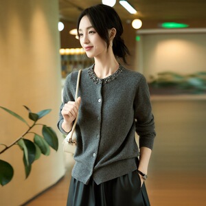 法式重工钉珠100纯羊毛针织开衫女新款短外套毛衣高级感女装上衣