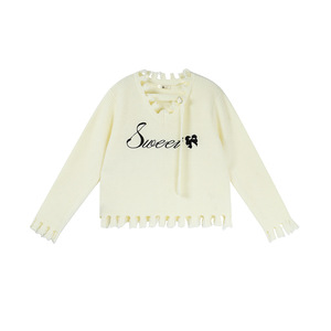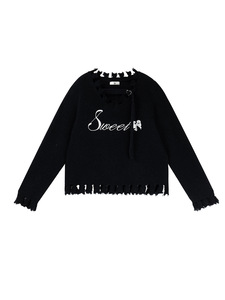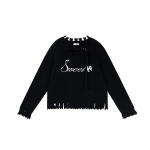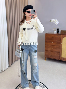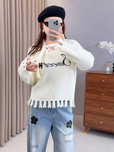 双天大码2025年秋新款微胖女装显瘦时尚刺绣字母毛边女士毛衣F605