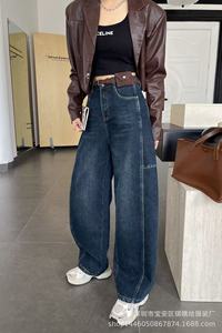 琪镌绘制欧美阔腿弯刀牛仔裤女秋季款高街宽松显瘦直筒镰刀裤1866