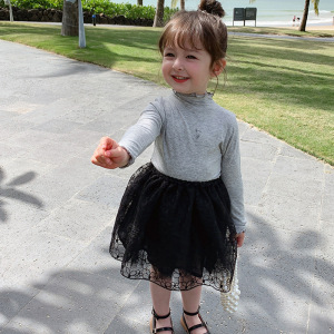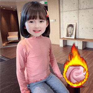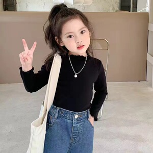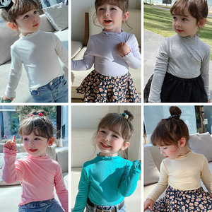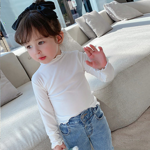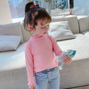 厂家直销女童打底衫春秋新款儿童韩版洋气花边纯色长袖小宝宝上衣