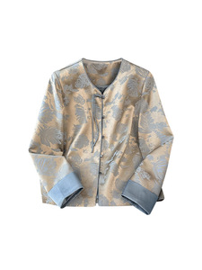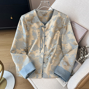新中式国风圆领长袖提花外套女秋季新款2025年设计感小众百搭上衣