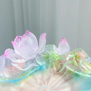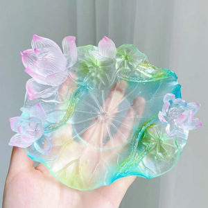 东魅荷气生才青蓝渐变古法琉璃琉璃杯垫荷气生才杯垫 桌面饰品