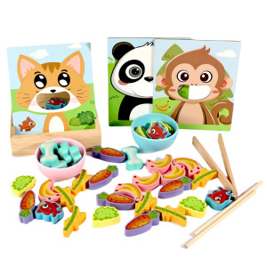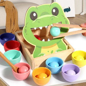 儿童早教颜色分类教具幼儿园色彩启蒙教育认知配对喂食游戏木质