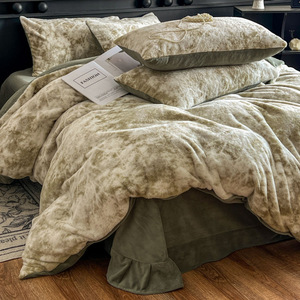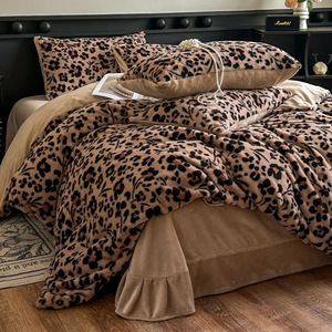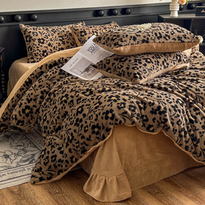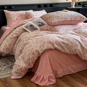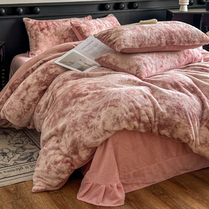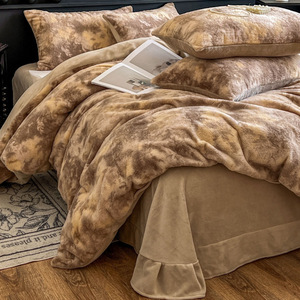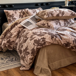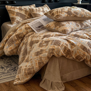 高级感加厚冬季兔毛绒四件套保暖牛奶绒印花被套双面绒床单珊瑚绒