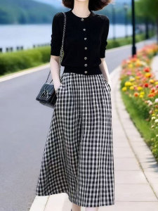 2025早秋季新款干练气质女装成套搭配减龄套装裙显瘦格子裙两件套