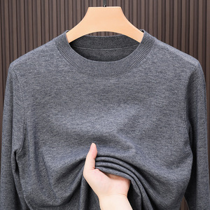跨境批发秋冬新款男士长袖加厚纯色毛衣针织衫抗起球内搭圆领毛衫