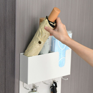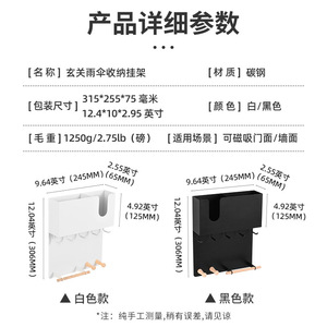 跨境入户门钥匙架门上木质免打孔雨伞架家用磁吸壁挂式玄关置物架