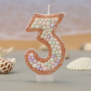 跨境亚马逊temu新款数字蜡烛0-9鹅卵石创意生日派对蜡烛蛋糕装饰