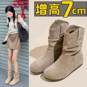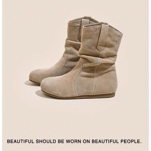 平底韩式圆头堆堆靴短靴女靴2025新款简约时尚磨砂牛皮套筒中筒靴