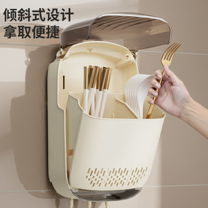 新款筷子防尘收纳盒壁挂式家用筷子筒厨房筷子勺子置物架沥水筷篓