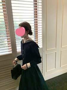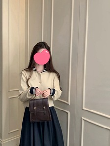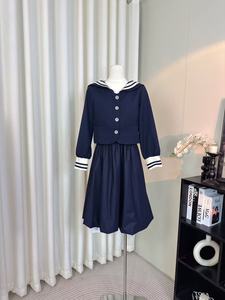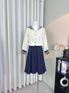 桃可了 航行秋日 少女学院风海军领短款小风衣外套女秋半身裙套装