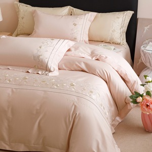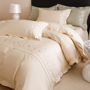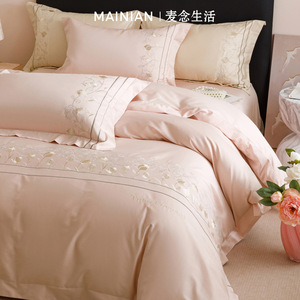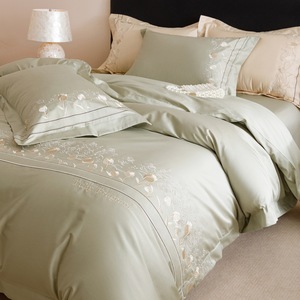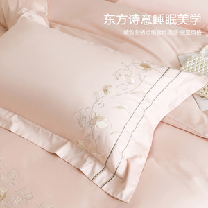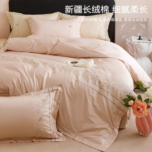高端轻奢A类100支长绒棉纯棉四件套全棉刺绣宽边被套床笠床上用品