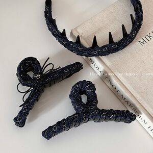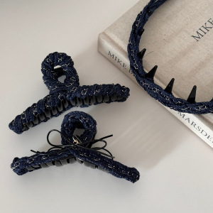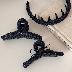 牛仔藏青色时尚简约链条缠绕抓夹新款通勤盘发鲨鱼夹气质发饰新款