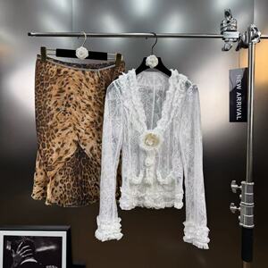 纯欲风大花蕾丝设计感显瘦气质小衫豹纹半裙套装
