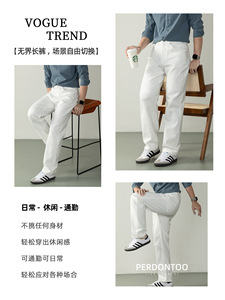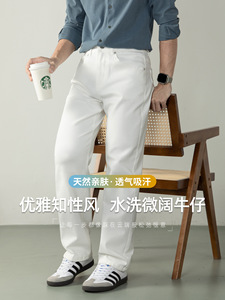 知性风 | 亲肤水洗微阔白色牛仔裤男士高级秋冬直筒休闲百搭长裤