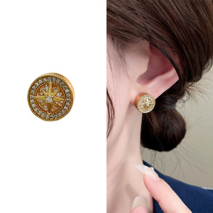 超闪轻奢圆形八芒星耳钉高级感百搭满钻锆石网红女士耳环工厂批发