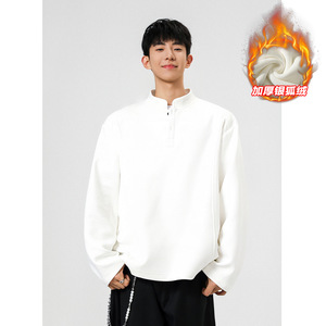 华棉270g重磅亨利领大码长袖T恤男T24555特P19 T24555J加绒特P25