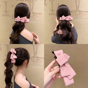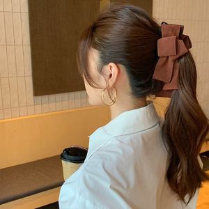 韩版高级感麂皮绒多层蝴蝶结香蕉夹女后脑勺盘发夹马尾夹发饰新款