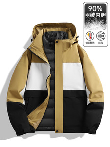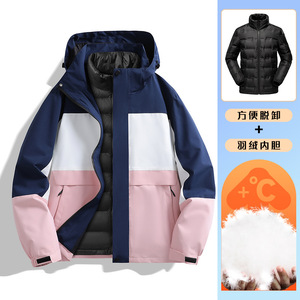 90白鸭绒户外三合一冲锋衣可拆卸防风加绒保暖登山服外套工作服