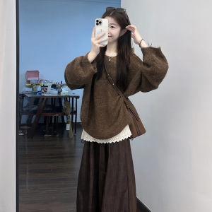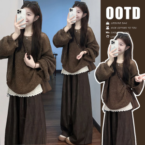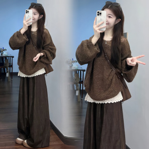 孕妇装秋套装高级感2025新款针织长袖毛衣秋冬两件套孕期法式穿搭