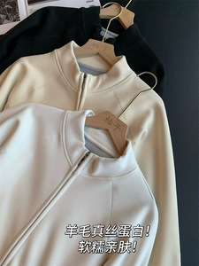 石墨烯真丝羊毛蛋白立领自发热小外套柔软保暖修身显瘦女秋冬卫衣