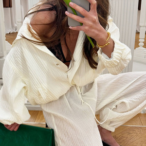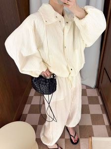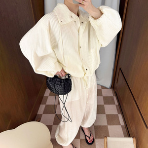 韩版ins风皱料长袖灯笼裤套装女设计感气质时尚2025跨境秋冬新款