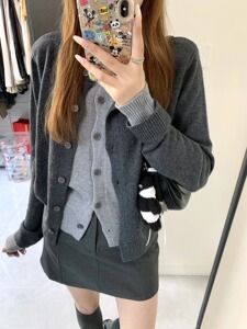 韩系撞色拼接假两件毛衣开衫女秋季新款百搭宽松上衣显瘦针织外套