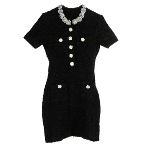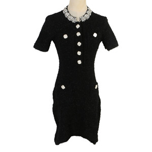 法式优雅连衣裙显瘦卓雅短袖连衣裙钉钻圆领秋冬新款名媛风短裙女