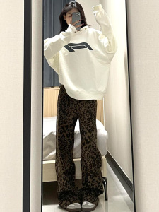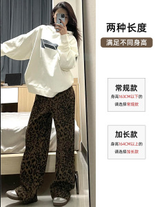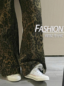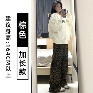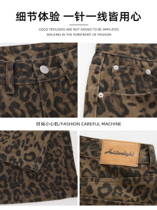 美式豹纹工装牛仔裤女秋季2025新款高腰显瘦港风设计感休闲阔腿裤