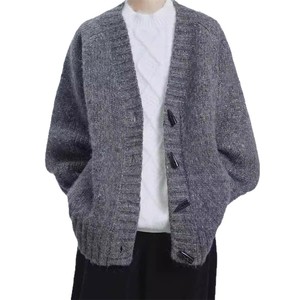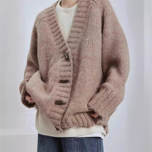 牛角扣宽松慵懒风针织开衫外套女秋冬新款毛衣纯色上衣跨境外贸潮