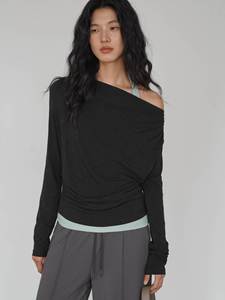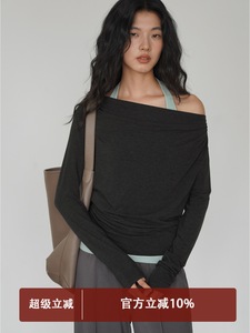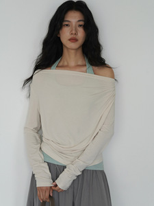 EIGHTHMONTH辣妹风叠穿套装灰露肩上衣+浅绿内搭时尚小心机两件套