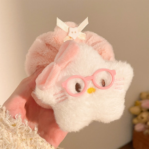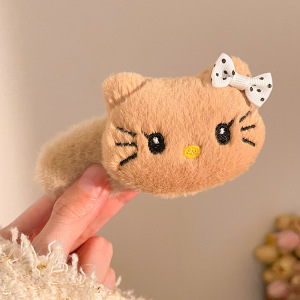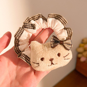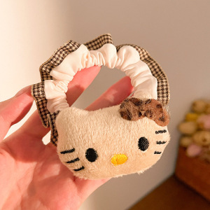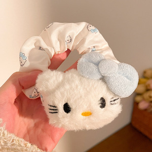 秋冬毛绒公仔花边大肠发圈卡通kt猫马尾头绳diy发夹甜美发饰头饰