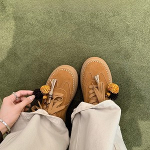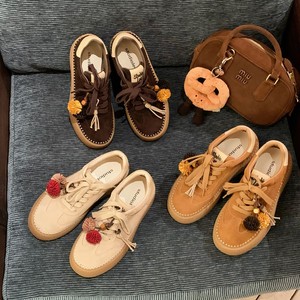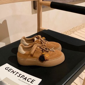 增高5cm松果圆头2025秋季新款厚底复古休闲系带德训阿甘板鞋女