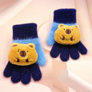 儿童LA布布手套五指保暖卡通冬季防寒加厚中小童学生骑车写字冬季