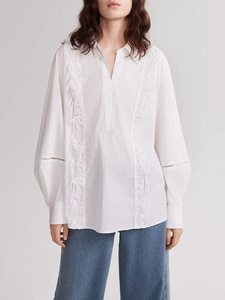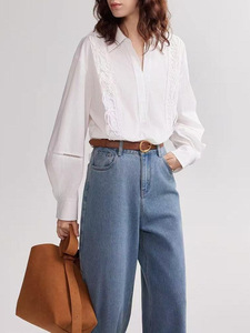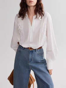 ELLE 法式白色镂空绣花简约衬衫2025女秋季新款宽松别致气质小衫
