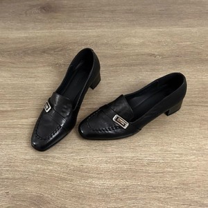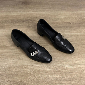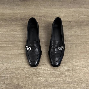 打版中复古方头浅口金属扣一脚蹬小皮鞋休闲百搭粗跟乐福鞋单鞋女