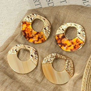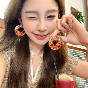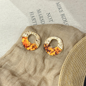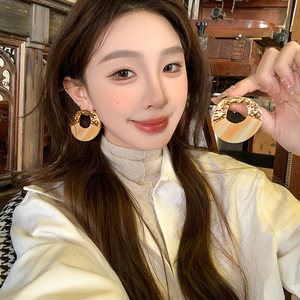 银针亚克力不规则圆形镂空耳钉简约时尚耳环小众高级感复古耳饰女