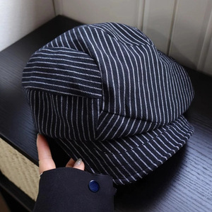 M403-条纹八角帽 黑色