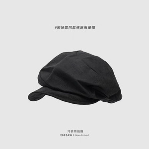 山本风复古贝雷帽女2025新款秋纯色文艺百搭报童帽大头围画家帽子