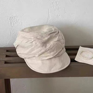 M401-棉麻褶皱贝雷帽 米色