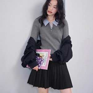 polo领上衣灰色女2025秋季新款黄色修身显瘦针织衫KSA2508015