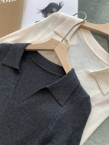 chao舒适羊毛混纺翻领针织衫高弹修身显瘦打底衫女2025秋冬新款