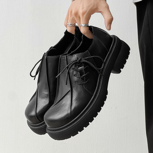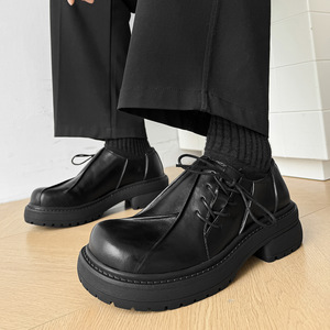 3890手工褶皱德比鞋男款黑色大头皮鞋英伦风小众高级感通勤单鞋
