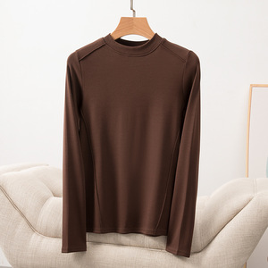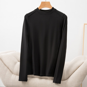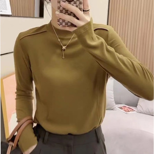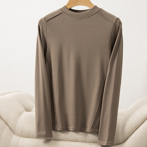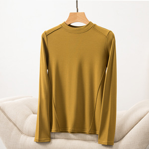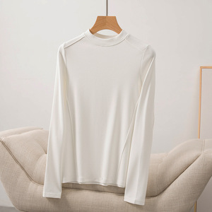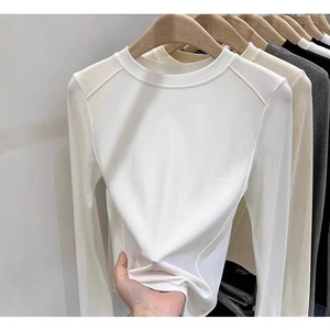 白色小圆领打底衫女秋冬新款内搭修身鱼骨线衣秋冬长袖t恤小衫女